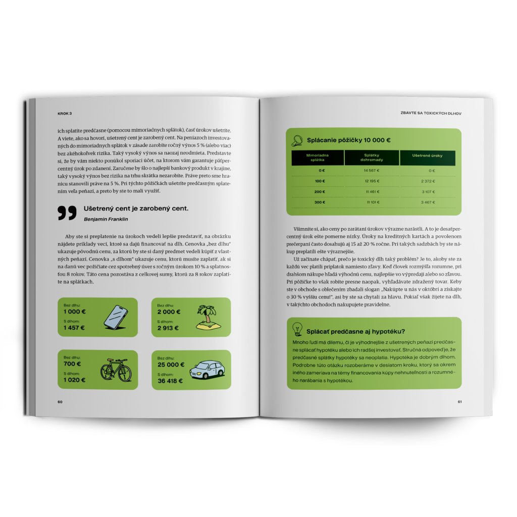 Knihu napísali slovenskí autori, vychádza z našich domácich podmienok a je plná inšpiratívnych príbehov ľudí, ktorí sa rozhodli prevziať kontrolu nad svojimi peniazmi. Ukáže vám, že bohatší a šťastnejší život nestojí tak veľa, ako ste si doteraz mysleli.